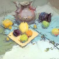 调色是水粉画色彩能否表现丰富的关键。调色不当画面会出现生、灰、脏、乱、火、菜(色彩假)等现象。一般说来,在掌握用水的技巧后,做画时把任何一个物体的色彩分析出色彩层次,逐层逐步表达出来。主要物体和物体亮部宜画